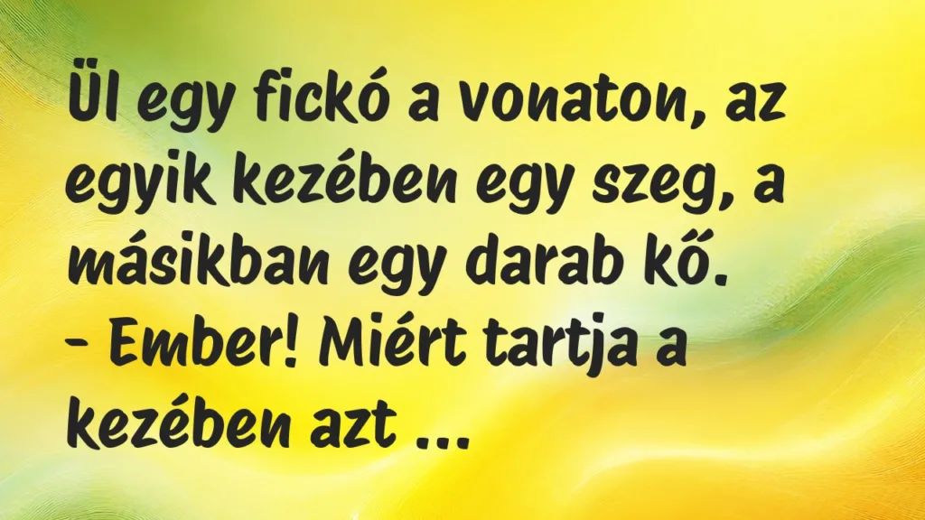 Ül egy fickó a vonaton, az egyik kezében egy szeg, a másikban egy darab kő.