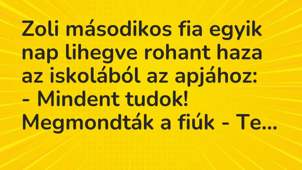 Zoli másodikos fia egyik nap lihegve rohant haza az iskolából az apjához:
