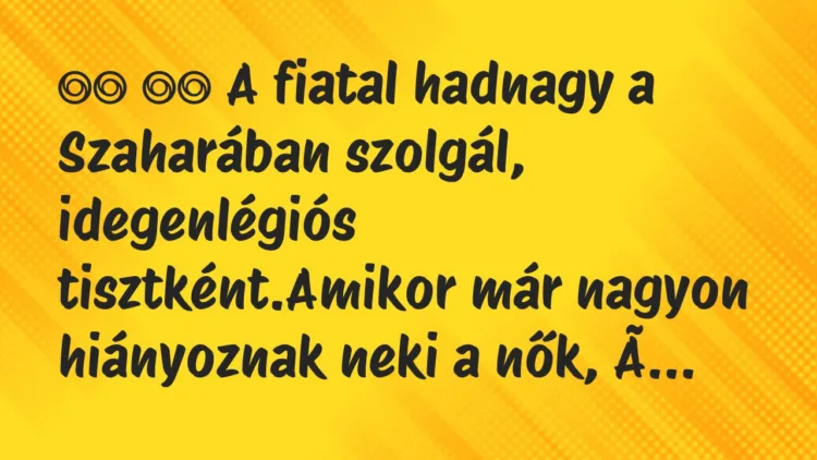 – Hát úgy mondtam volna hadnagy úr, ha hagyta volna befejezni a mondatot, hogy ha ránk tör a szexőrület, felülünk a teve hátára, és innen húsz kilométerre van egy príma kupleráj, gyönyörű nőkkel…