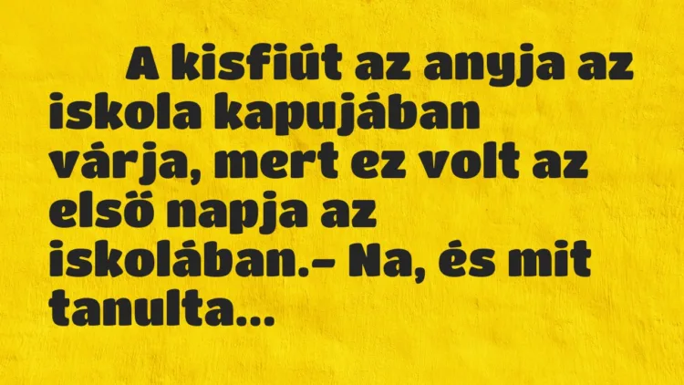 A kisfiút az anyja az iskola kapujában várja, mert ez volt az első napja az iskolában.