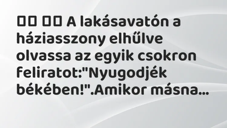 A lakásavatón a háziasszony elhűlve olvassa az egyik csokron feliratot: