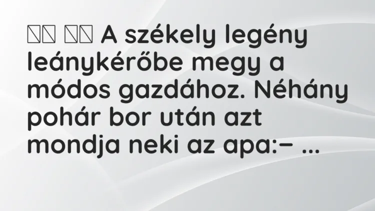 A székely legény leánykérőbe megy a módos gazdához.