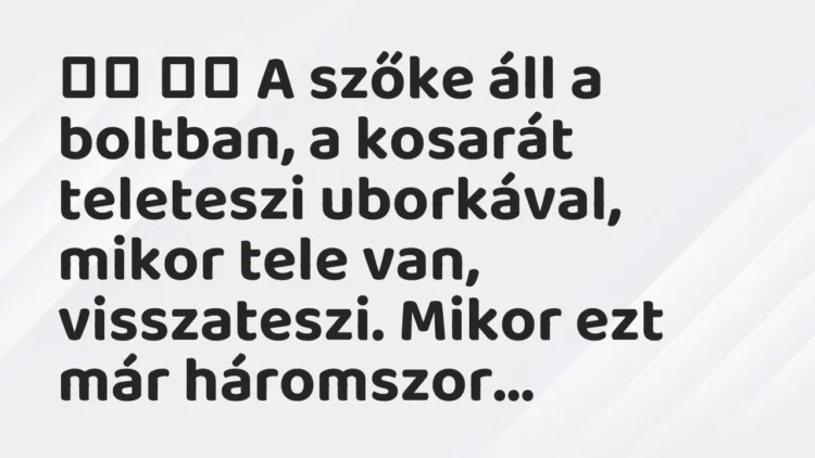 A szőke áll a boltban, a kosarát teleteszi uborkával, mikor tele van, visszateszi.