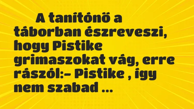 A tanítónő a táborban észreveszi, hogy Pistike grimaszokat vág, erre rászól: