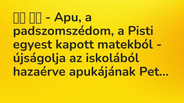 – Apu, a padszomszédom, a Pisti egyest kapott matekból – újságolja az iskolából hazaérve apukájának Peti.