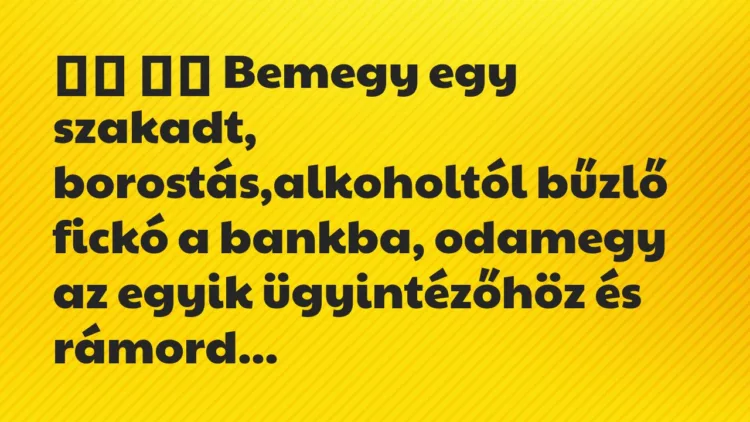 alkoholtól bűzlő fickó a bankba, odamegy az egyik ügyintézőhöz és rámordul: