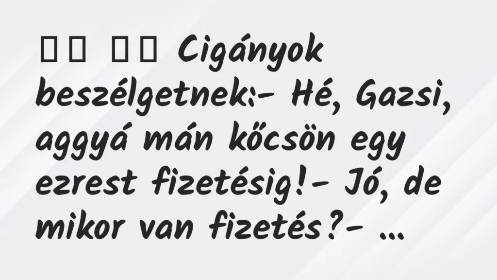 – Hé, Gazsi, aggyá mán kőcsön egy ezrest fizetésig!