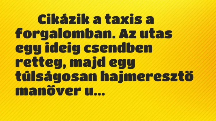 Az utas egy ideig csendben retteg, majd egy túlságosan hajmeresztő manőver után odaszól: