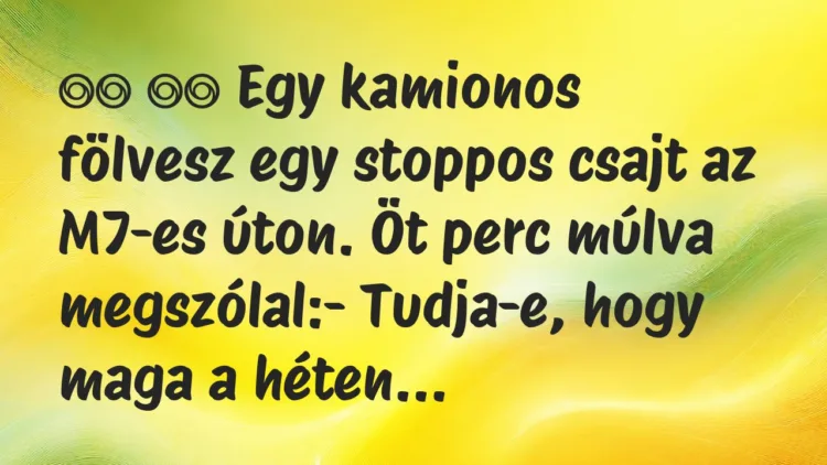 Egy kamionos fölvesz egy stoppos csajt az M7-es úton.