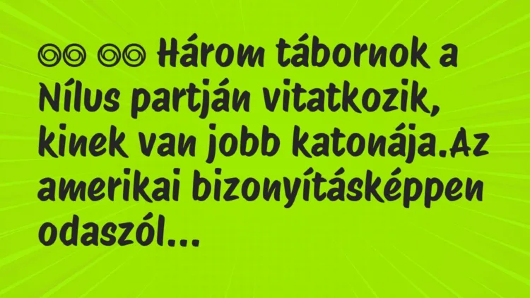 Három tábornok a Nílus partján vitatkozik, kinek van jobb katonája.