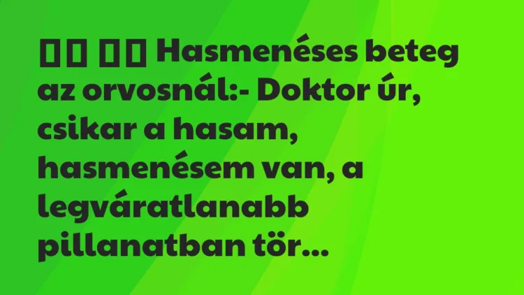 – Doktor úr, csikar a hasam, hasmenésem van, a legváratlanabb pillanatban tör rám a nagydolog, és olyankor általában előfordul egy kisebb-nagyobb baleset.