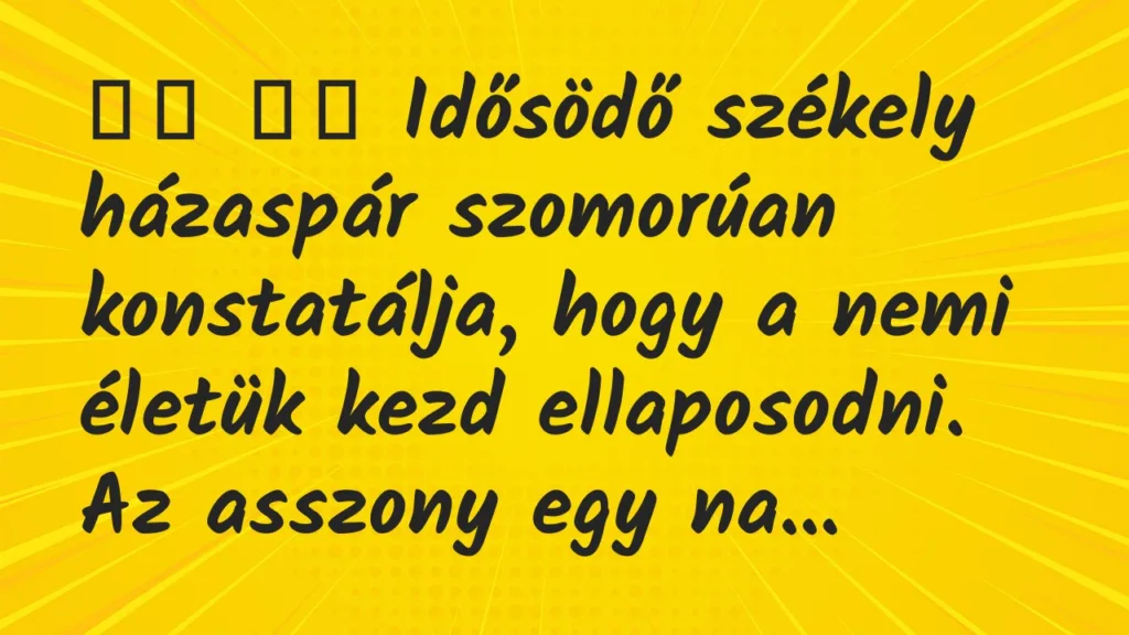 Idősödő székely házaspár szomorúan konstatálja, hogy a nemi életük kezd ellaposodni.