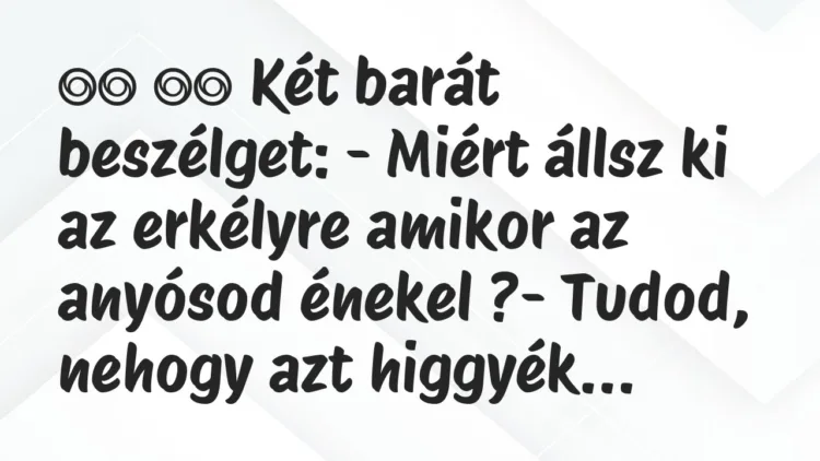 – Miért állsz ki az erkélyre amikor az anyósod énekel ?- Tudod, nehogy azt higgyék a szomszédok, hogy verem.