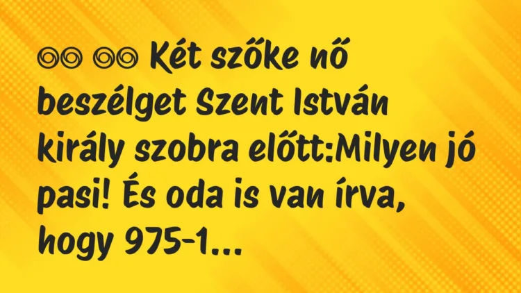 Két szőke nő beszélget Szent István király szobra előtt:Milyen jó pasi!