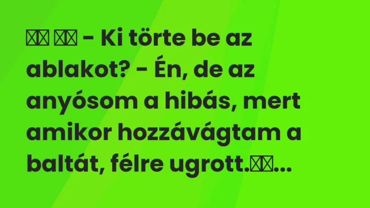 – Én, de az anyósom a hibás, mert amikor hozzávágtam a baltát, félre ugrott.