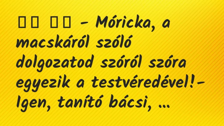 – Móricka, a macskáról szóló dolgozatod szóról szóra egyezik a testvéredével!