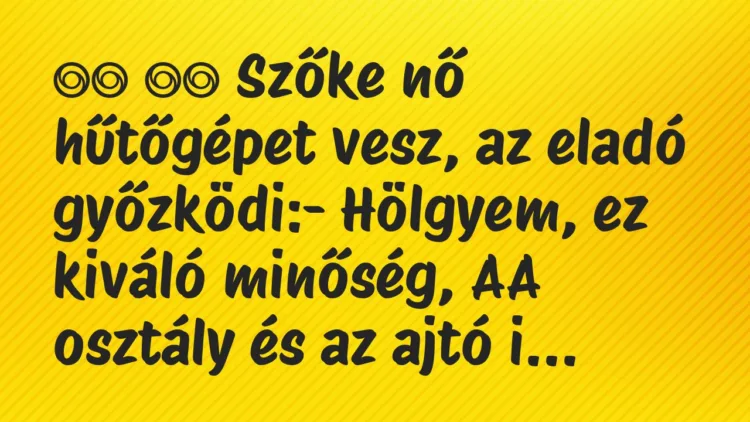 Szőke nő hűtőgépet vesz, az eladó győzködi: