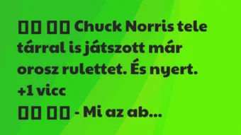 Chuck Norris tele tárral is játszott már orosz rulettet. És nyert. +1 vicc - Mi az abszolút illedelmetlenség?- Anyóst lelökni a lépcsőn és megkérdezni hova…