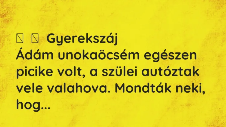 Ádám unokaöcsém egészen picike volt, a szülei autóztak vele valahova.