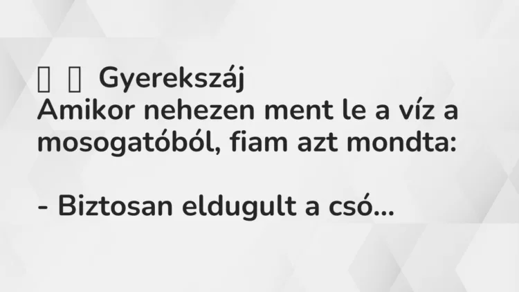 Amikor nehezen ment le a víz a mosogatóból, fiam azt mondta:
