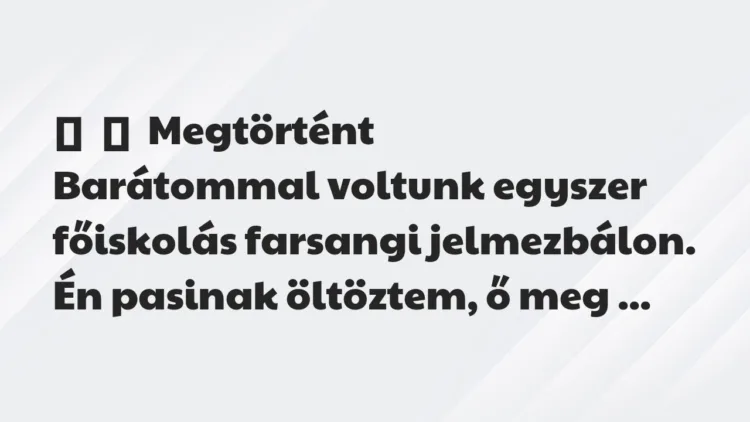 Barátommal voltunk egyszer főiskolás farsangi jelmezbálon.